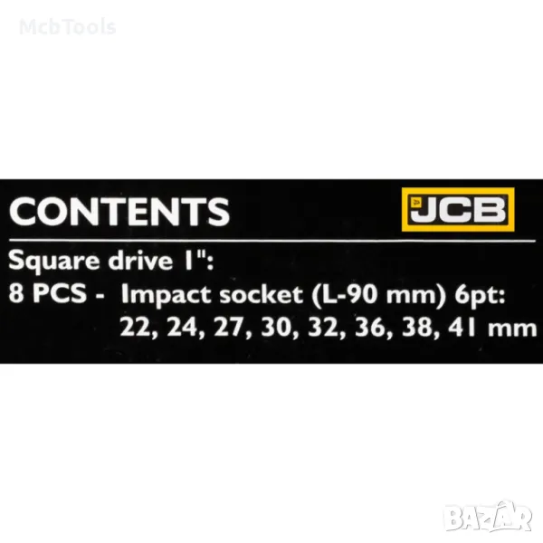 Комплект дълбоки ударни вложки 6-стенни 1″ (22 – 41 мм) 8 части JCB