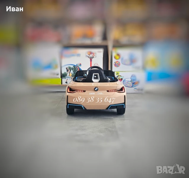 ТОП ЦЕНА!НОВО!Акумулаторна кола BMW i4 с 12V батерия,кожена седалка,МЕКИ ГУМИ → Обява 48874021