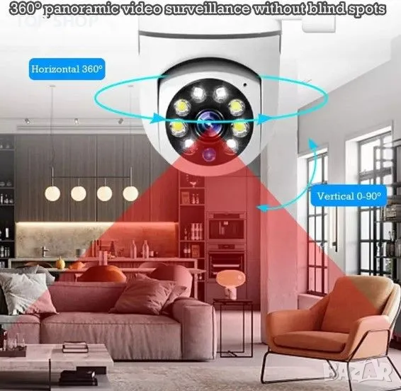Wifi камера за видеонаблюдение Tnagora, FULL HD, Интериор / Екстериор, Панорама/Наклон 360 градуса,