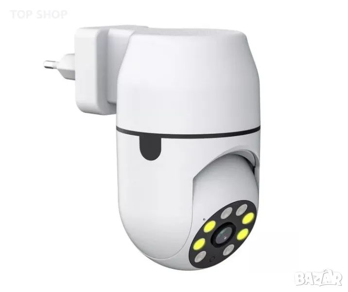 Wifi камера за видеонаблюдение Tnagora, FULL HD, Интериор / Екстериор, Панорама/Наклон 360 градуса, Night Vision, Сензор за движение, Звукова / Светлинна аларма, Бял