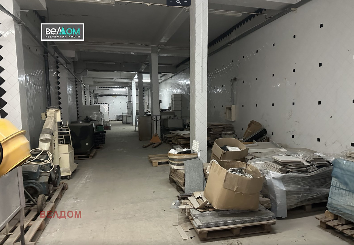 - Склад 250 м2, Н-4 м, под- шлайфан бетон, стени- фаянс, WC, врата- ролетна щора към двора.