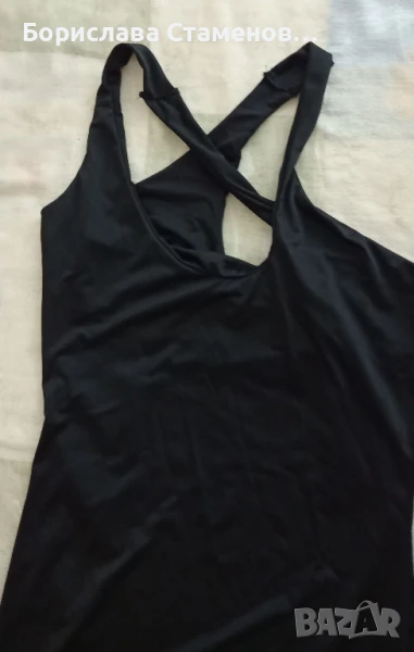 Роклята е с дължина 80 см. Има интересни преплитащи се презрамки. Според мен отговаря на размер S.