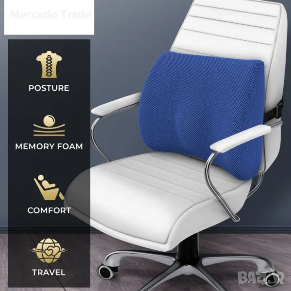 Ортопедична възглавница Mercado Trade за лумбална опора от мемори пяна, спомага за премахване на болките в кръста, поддържа гръбнака и способства за правилна стойка.