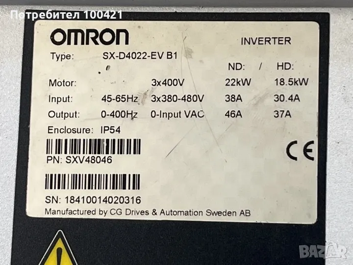 Честотно управление Omron 18.5kW, напълно функциониращо.