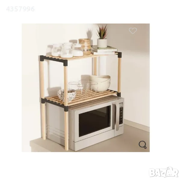 микровълнова за оползотворяване на пространството над микровълновата фурна. Устройството се поставя отдолу, а отгоре има 2 раирани рафта за подреждане на други аксесоари, чаши или подправки. Ако