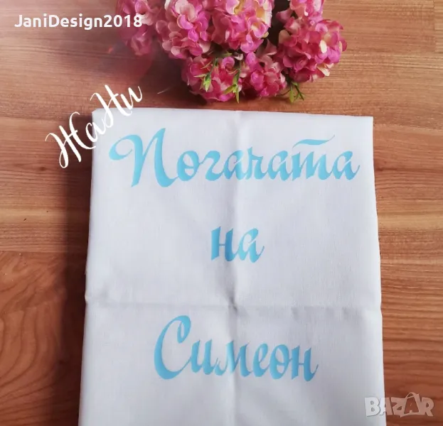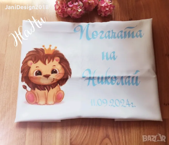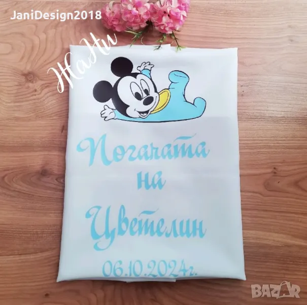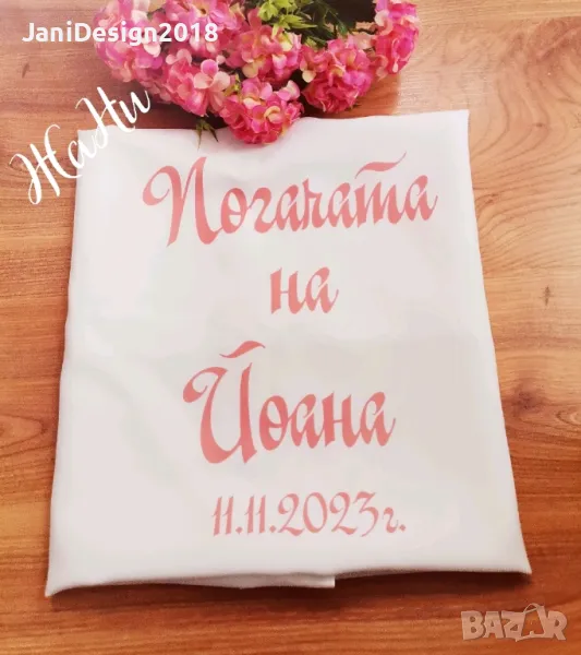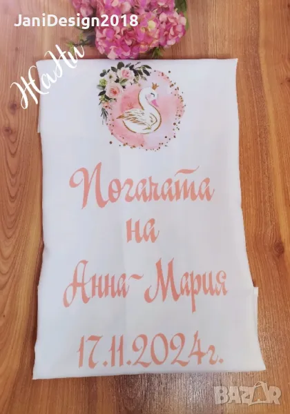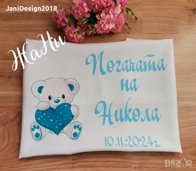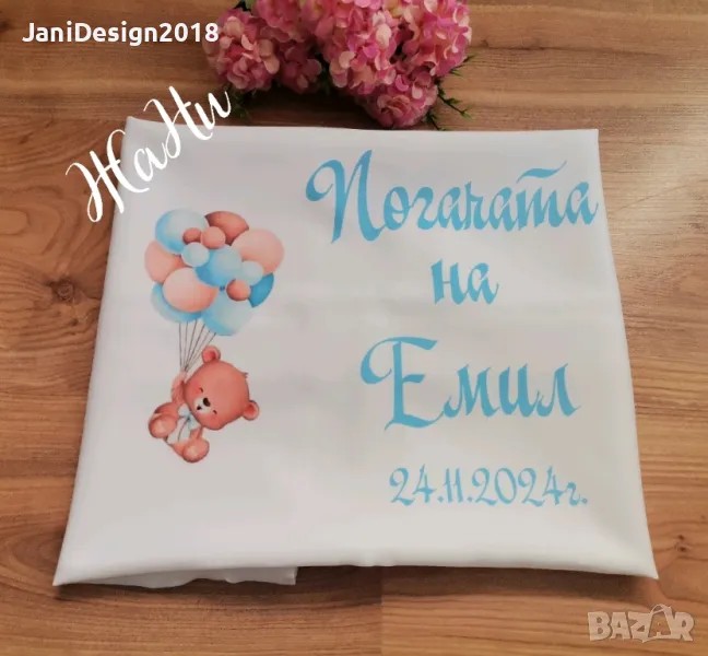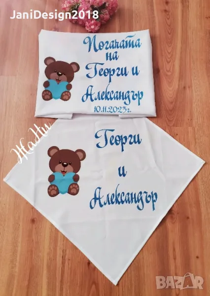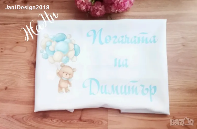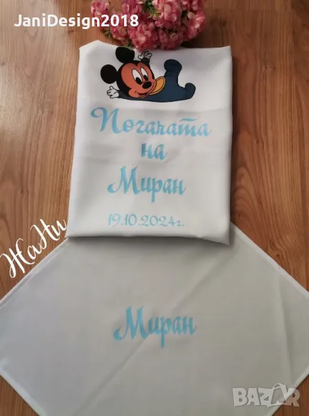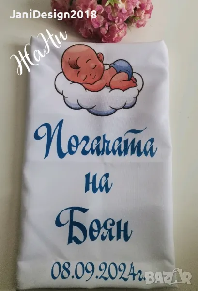 Към месала може дсе добави малка кърпичка за паричките с име, боди за детето с надпис