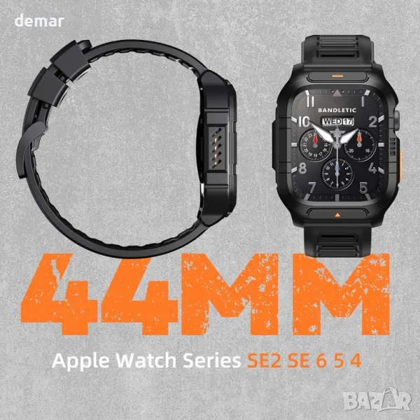 Метален корпус с каишка, съвместим с каишки за Apple Watch 44 mm