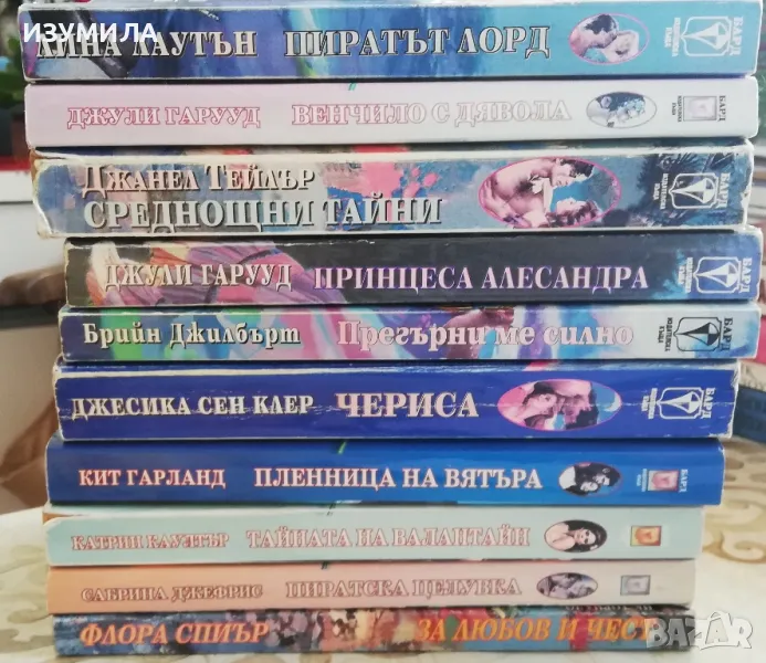 Много добре запазена книга, на практика не е отгръщана, леко потъмняла хартия на листите от времето. Разполагам с много заглавия от поредиците исторически любовни романи на Бард, Ирис и др. Прилагам снимки след заглавната, но ако има нещо друго, което търсите, а не откривате сред обявите-пишете ми! Лично предаване е възможно за Казанлък и Стара Загора, иначе изпращам с Еконт или Спиди с опция преглед. За чужбина само с предварително плащане.