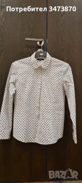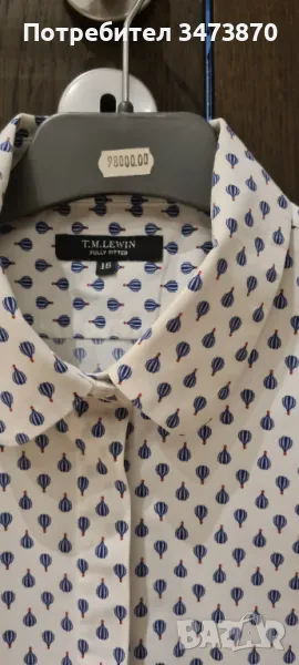 Нова дамска риза, закупена от Англия, не е носена, само е изпрана. Много добра материя-памук, еластан, малко полиестер. Има леко вталяване. Размер L ,английска номерация 16.