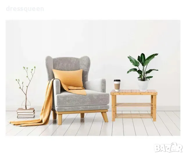 Добавете ред и стил във вашия дом с тази функционална и красива бамбукова пейка с рафтове!