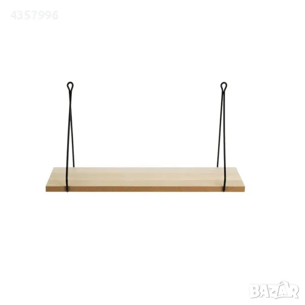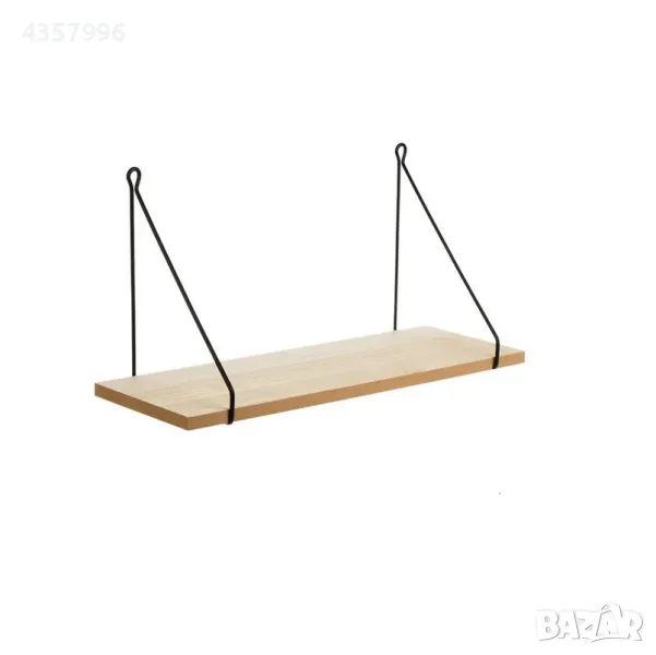Декоративен рафт с метални пръти и дървена (MDF) основа в естествен цвят.