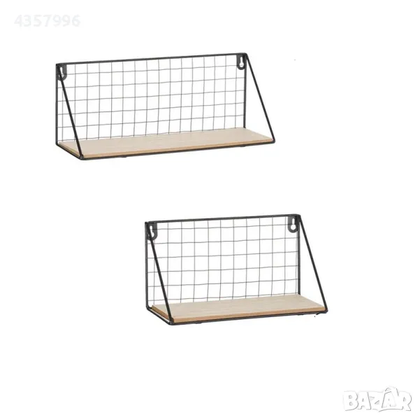 Комплект декоративни рафтове с метална мрежа на гърба и дървена (MDF) основа. Те не изискват сглобяване и се монтират лесно с 2 винта и дюбели (не са включени).