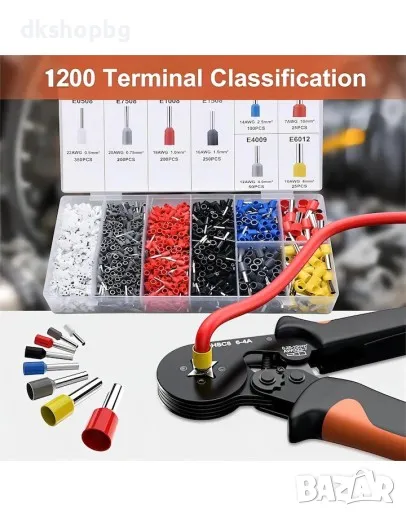 Този професионален комплект за кримпване включва висококачествени кримпващи клещи HSC8 6-4A и 2000 броя кабелни обувки в разнообразни цветове и размери, осигуряващи максимална функционалност и удобство при електрически инсталации и ремонти.