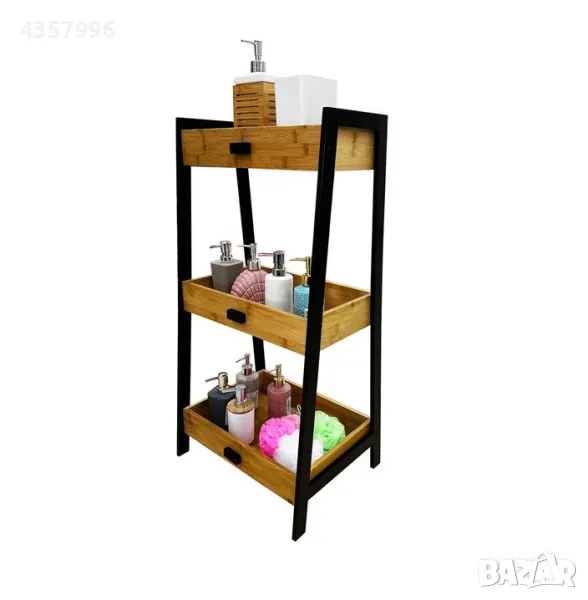 Идеален е за банята, подрежда вашите шампоани, козметика и кърпи. Материал на продукта: Бамбук, метал