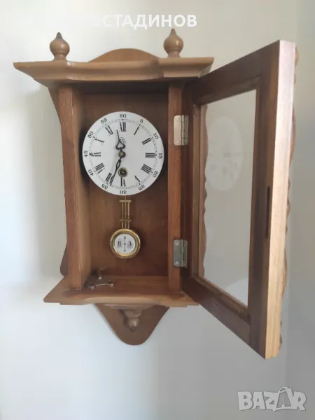 Продавам дървен стенен часовник в отлично състояние.Часовникът е немски ,,Feha,,, закупен нов преди 30 години от Германия. Един собственик , грижливо подържан и обслужван. Навива се веднъж седмично. Работи точно и безупречно. По външния вид няма никакви забележки , изглежда като нов. При вземане от място давам гаранция 6 месеца.