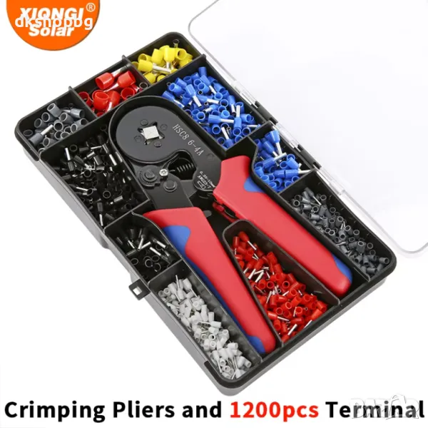 Този универсален комплект включва висококачествения инструмент за кримпване HSC8 6-4A, придружен от 1200 изолирани накрайника и практична кутия за съхранение. Той е идеалният избор за професионалисти и любители, които търсят надеждност, прецизност и удобство при работа с кабелни връзки.