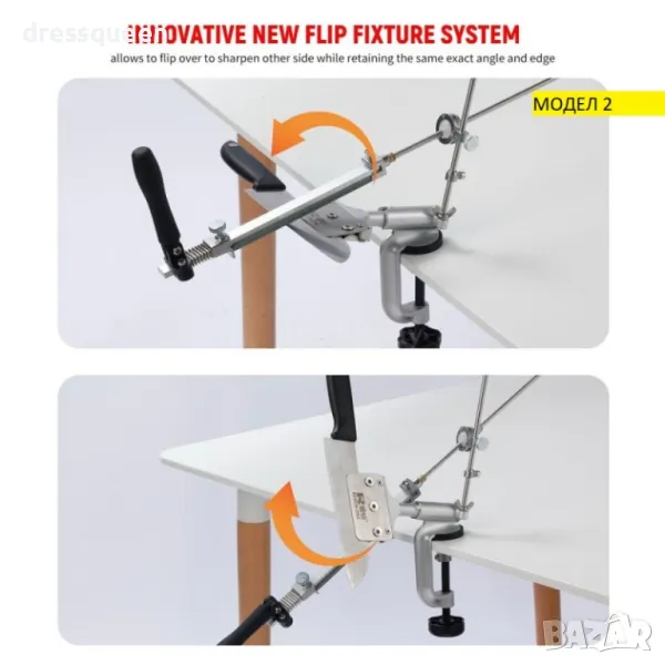 Фиксиран ъгъл на заточване: Позволява постоянна и прецизна работа, идеална за всякакъв вид ножове.