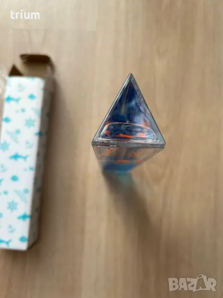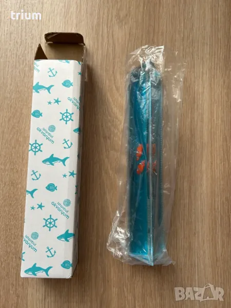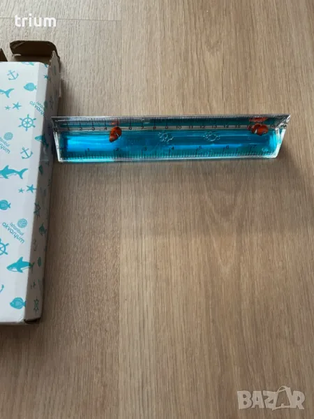 Детска линия за чертане и измеране, 3d с форма на триъгълна призма, с любимата рибка клоун Немо. Между стените на призмата има синя течност и две рибки плуват в нея при движение на линията. Дължина - 19см.
