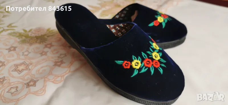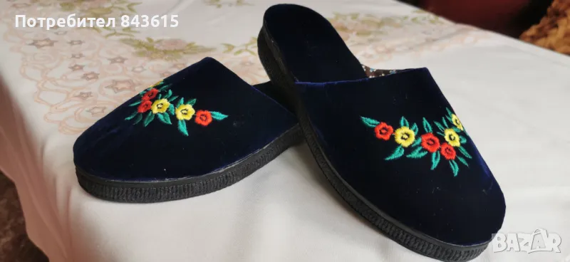 Чехлички, пантофи от синьо кадифе → Обява 48879221