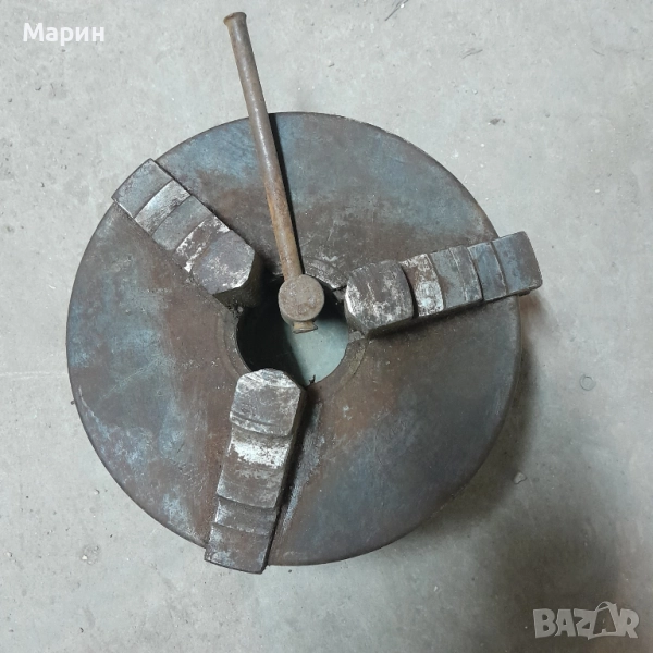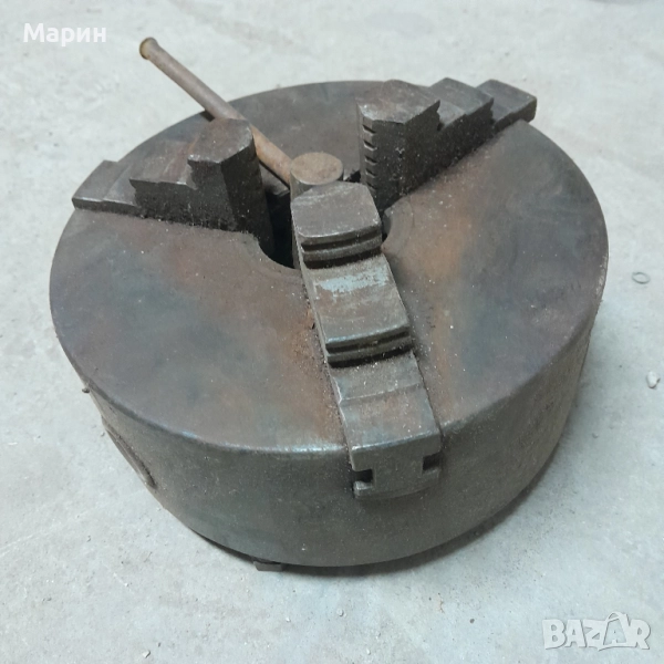 Патронника ф 200 е с 3 плашки за външно и вътрешно захващане на детайла, в много добро състояние.