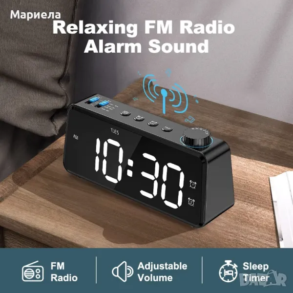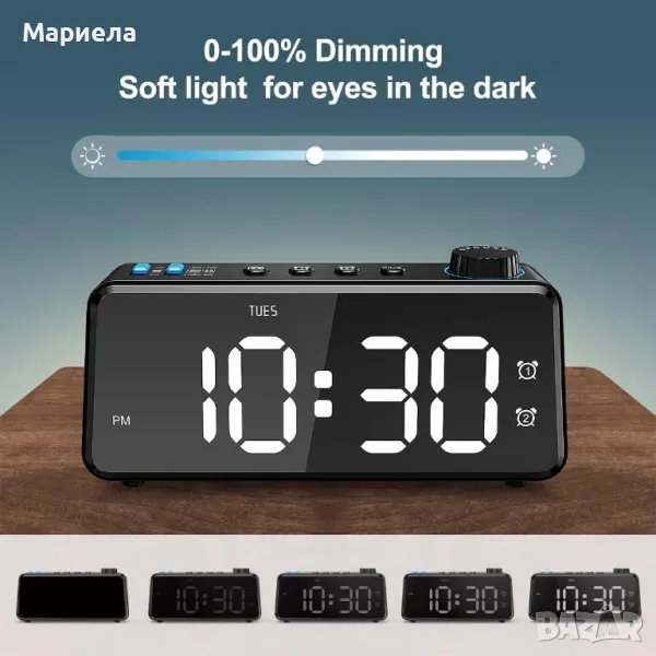 FM радио будилник / Дигитален часовник / LED дисплей с димер 0-100%