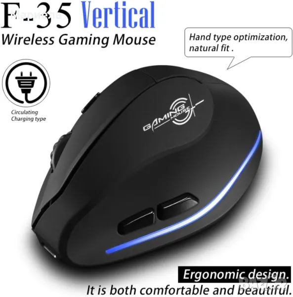 Вертикална безжична мишка / Акумулаторна Мишка 2400DPI / Ергономичен дизайн
