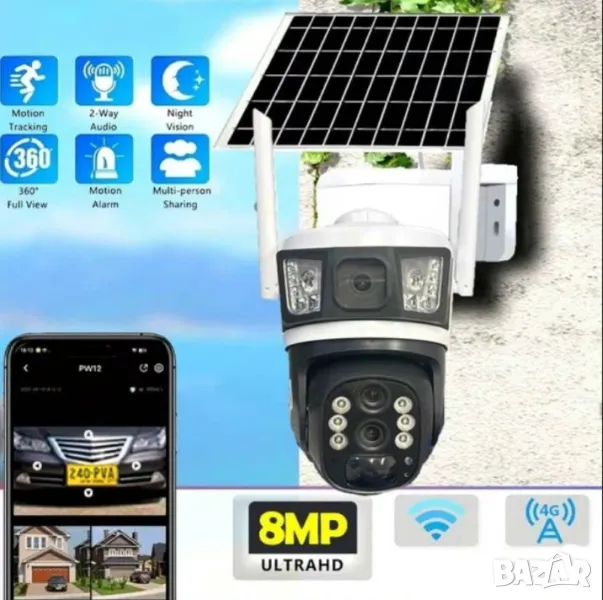 4G Соларна камера с 2 лещи 8MP и сим карта v380