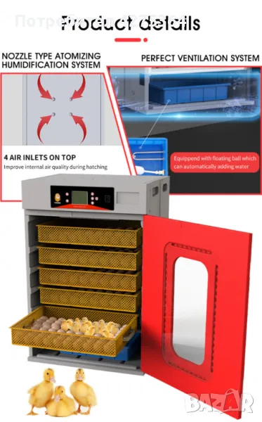 Напълно автоматичен инкубатор за 400 яйца EW-400, снимка 1 - Селскостопанска техника - 48879917 Напълно автоматичен инкубатор за 400 яйца EW-400, снимка 2 - Селскостопанска техника - 48879917 Напълно автоматичен инкубатор за 400 яйца EW-400, снимка 3 - Селскостопанска техника - 48879917 Напълно автоматичен инкубатор за 400 яйца EW-400, снимка 4 - Селскостопанска техника - 48879917 Напълно автоматичен инкубатор за 400 яйца EW-400, снимка 5 - Селскостопанска техника - 48879917 Напълно автоматичен инкубатор за 400 яйца EW-400, снимка 6 - Селскостопанска техника - 48879917 Напълно автоматичен инкубатор за 400 яйца EW-400, снимка 7 - Селскостопанска техника - 48879917 1/7