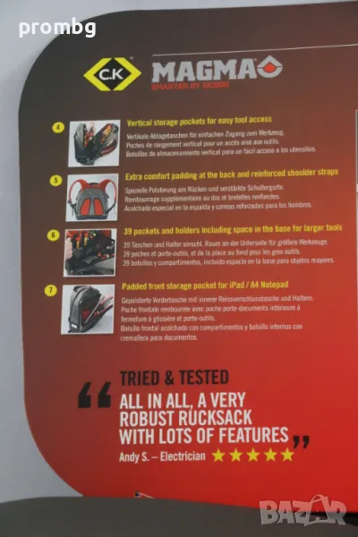 Работна раница за инструменти, органайзер C.K Magma, внос от Германия, високо качество. Изработена от здрав полиестер с яркочервен хастар, така че инструментите лесно могат да бъдат идентифицирани.