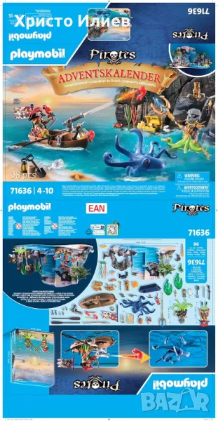 - Вълнуващи пиратски приключения: адвентният календар на PLAYMOBIL „Пирати“ осигурява вълнуващ предколеден сезон с 24 врати, пълни с изненади. Пиратите тръгват на лов за съкровища, но Dark Kraken и други опасности дебнат навсякъде!