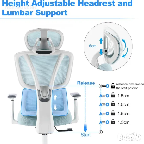 Този ергономичен стол има Y-образна облегалка, която точно възпроизвежда естествената извивка на гръбначния стълб, осигурявайки оптимална опора за гърба. Въртящият се стол осигурява пълна опора за цялото тяло и е универсален по отношение на височината на седалката, облегалката за глава, наклона, подлакътника и лумбалната опора, адаптирани към различни нужди.