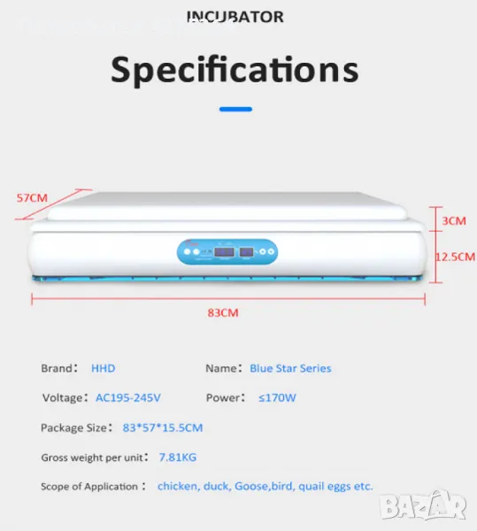 Инкубатор за 120 яйца с микрокомпютър и автоматичен контролер H-120