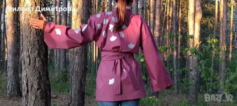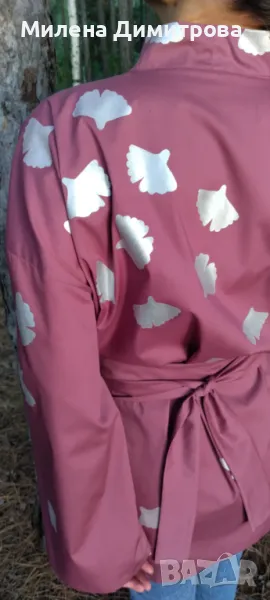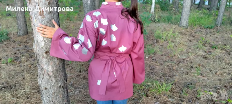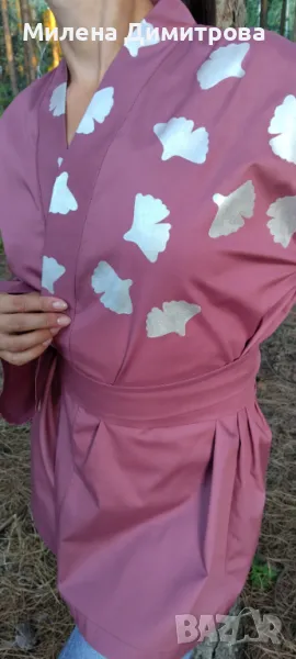 1. Дамско кимоно от тънък поплин Сребърна Гинко Билоба - това кимоно е специално и единствено по рода си.