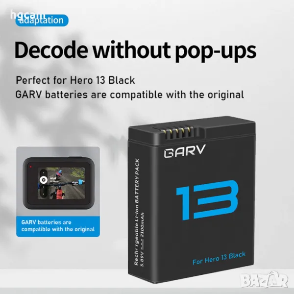 Комплект GARV зарядно устройство + 2бр. Батерии за GoPro Hero 13 Black, 2100mAh, Li-ion – наличен и готов за бърза доставка!