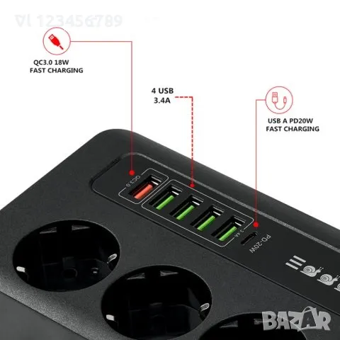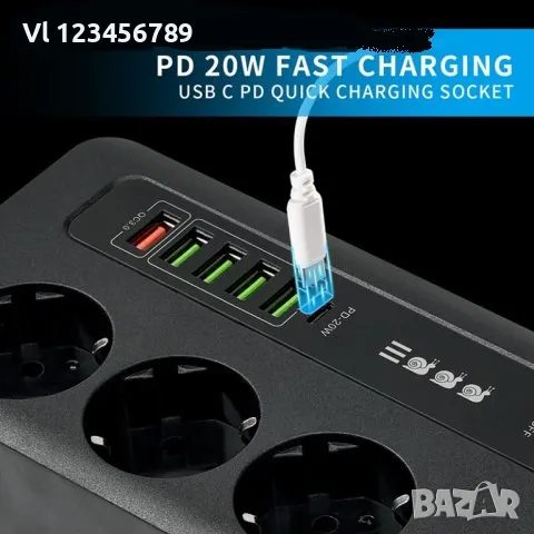 1. С 3 изхода+ 1x20W PD3.0 + 1x18W QC3.0+3x USB A