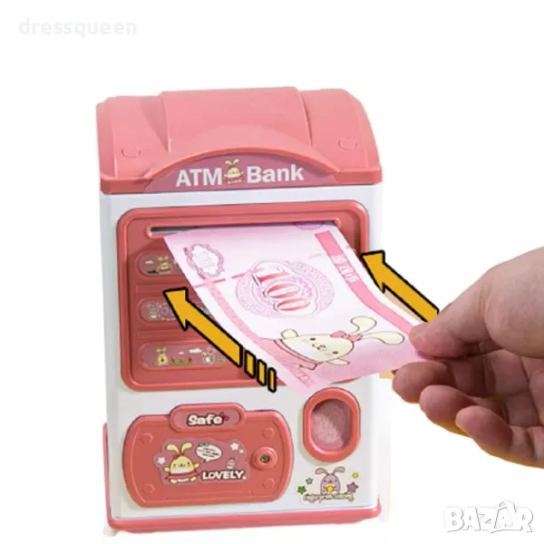 Входът за банкнотите автоматично ще абсорбира вашите пари като истински банкомат и в същото време ще издава звук и свелина , която е ярка и интересена, привличайки вниманието на децата.