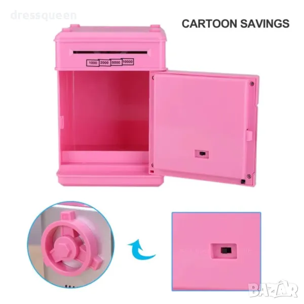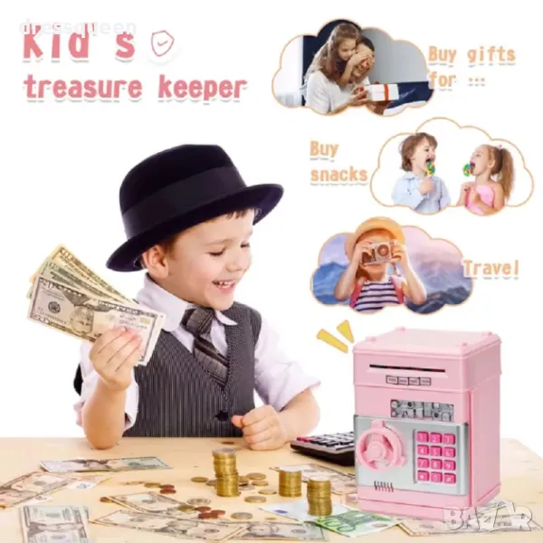 Всяко дете обича да събира парички! Касичката Сейф приема и монети и хартиени банкноти. Има електронен механизъм, който работи при подаването на банкноти и ги прибира. Спестяванията в нея са защитени с 4 цифрен ПИН код. Касичката има голям контейнер за съхранение на парите, така че спестяванията в нея могат да станат големи. Тази играчка е атрактивна идея с която да приучите детето да пести.