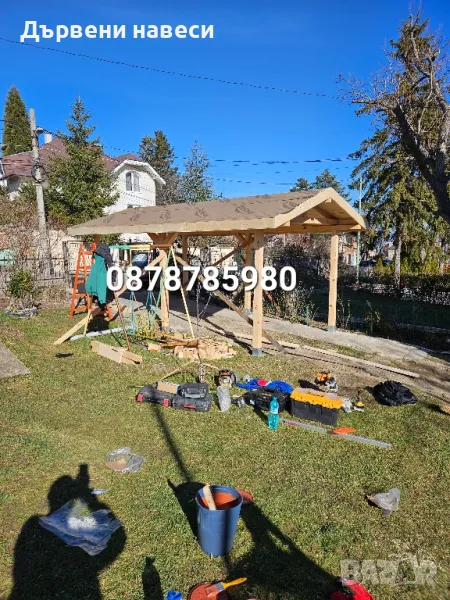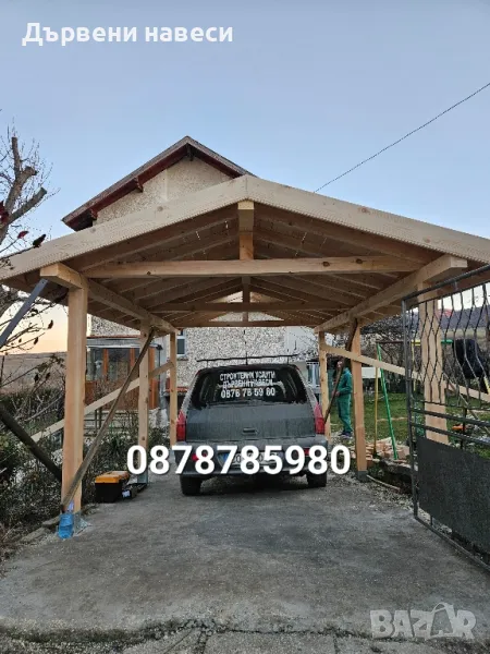 дървени навеси, беседки, барбекюта и гаражи, като целият дървен материал се шлайфа и импенгрира. Гаранция, договор направа на всякакви навеси от дърво, навеси на тераси, гаражни навеси за автомобили, навеси за летни кухни, барбекю и зимни градини от дърво