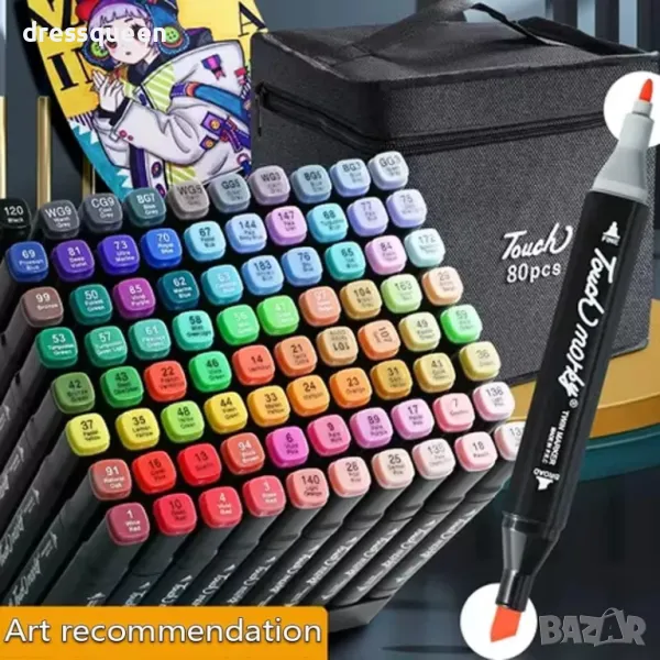 Този комплект от 80 маркера с два края е перфектният инструмент за всички, които обичат изкуството, дизайна и творческите проекти. С богата цветова палитра и практична чанта за носене, той е идеален за художници, илюстратори, графични дизайнери, студенти и любители на рисуването.