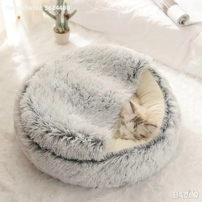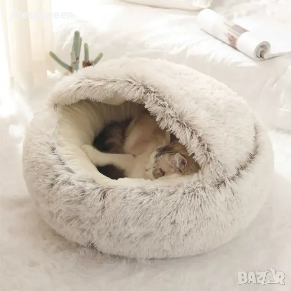 С дизайн, който наподобява малка пещера, това легло предоставя усещане за закътаност и топлина, което го прави подходящо за почивка и сън на котки, кученца и други дребни домашни любимци.