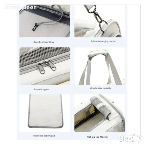 Чантата е изработена от прозрачни материали, което позволява на домашния любимец да наблюдава околната среда и да се чувства спокоен и защитен.