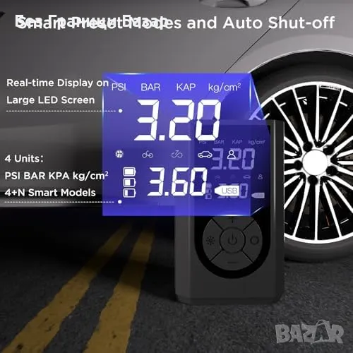Нов Мощен компресор за гуми 150PSI, 8000mAh, LED дисплей, 12V Помпа кола