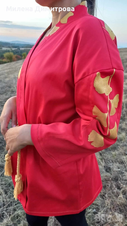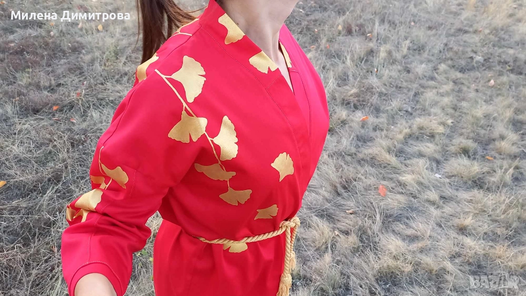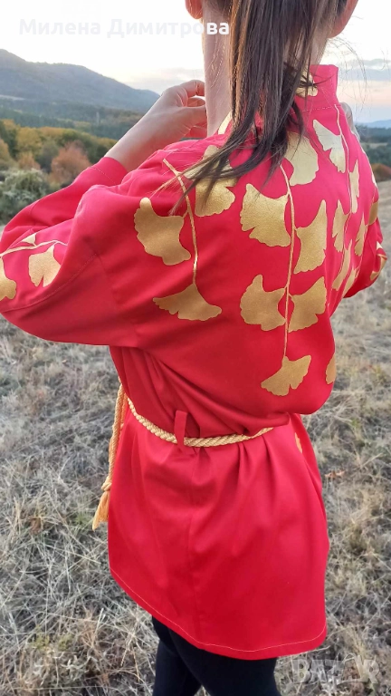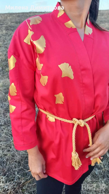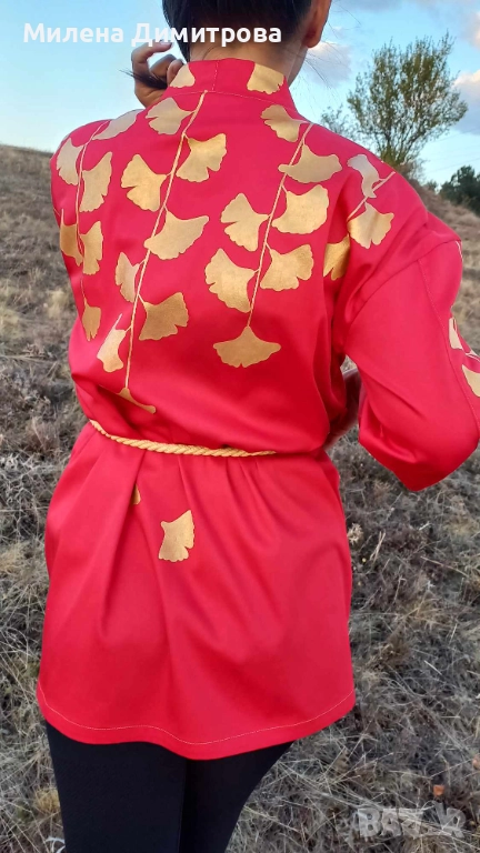 2. Дамско кимоно Златна Гинко Билоба - това кимоно е специално и единствено по рода си.