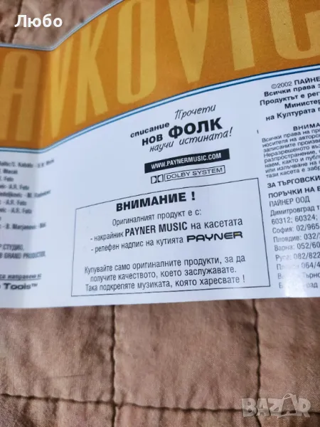 Оригинална касетка на PAYNER.Касетката е преслушана и работи безпроблемно.Носителя обложката и чистотата на звукът нямат забележки.