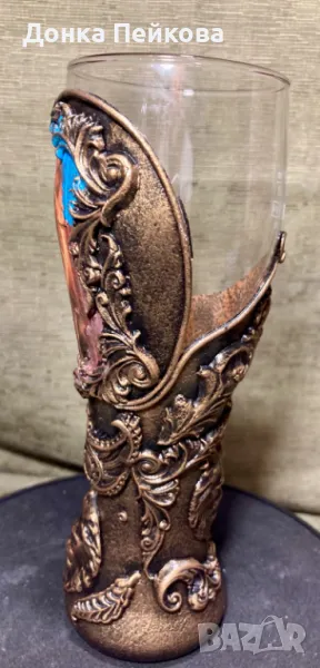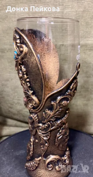 халба за бира с техника декупаж и студен порцелан. За изработката са използвани безвредни бои и материали, препоръчвам само ръчно миене с топла вода и мека гъба. Продукта е единствен и това го прави уникален. Прекрасен подарък за рожден ден, сватба, годишнина, абитуриенти-