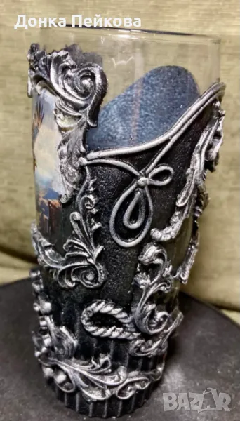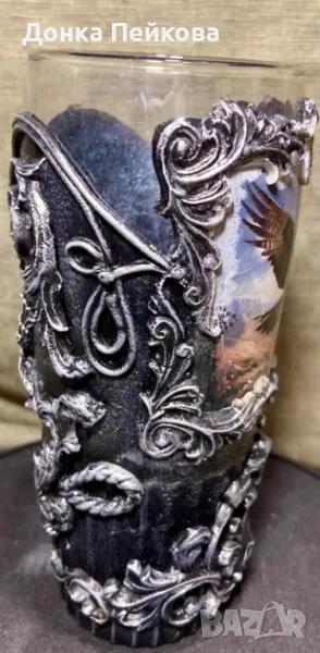 халба за бира с техника декупаж и студен порцелан. За изработката са използвани безвредни бои и материали, препоръчвам само ръчно миене с топла вода и мека гъба. Продукта е единствен и това го прави уникален. Прекрасен подарък за рожден ден, сватба, годишнина, абитуриенти-