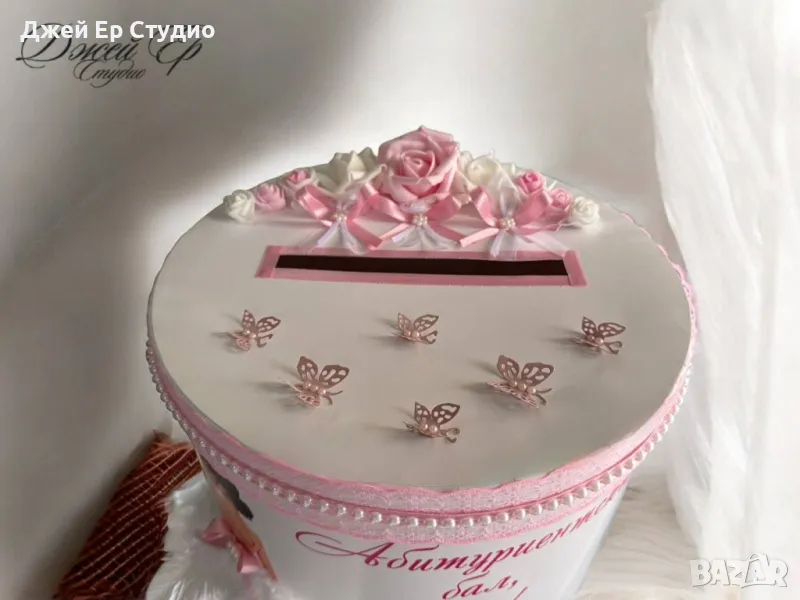 Кутия за картички и парични подаръци, подходяща за абитуриентски бал. Цветовете и материалите могат да бъдат по ваш избор. Срок на изработка 5 работни дни.
