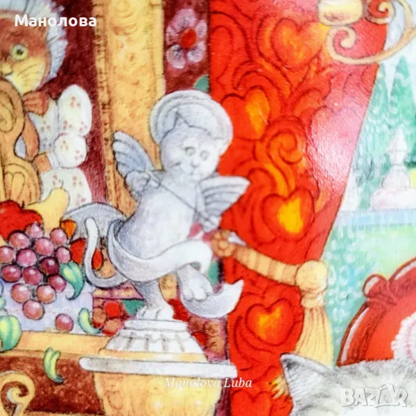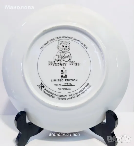 Колекционерска порцеланова чиния Wconker Wuv от серията Holiday Cat Plate на Franklin Mint.