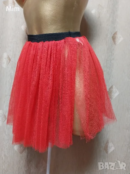 Ярко червена къса пола от еластична мрежа в талията е с черен ластик отпред има цепки който са до талията от 39 до 55 см едностранно, дължина 34 см Неразличима от нова без хартиен носител