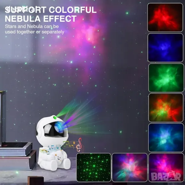Проекторът "Астронавт" е идеалният начин да превърнете всяка стая в магическо звездно небе. С дистанционното управление можете лесно да регулирате цветовете, яркостта и режимите на проекция, създавайки перфектната атмосфера за релакс, сън или забавление.